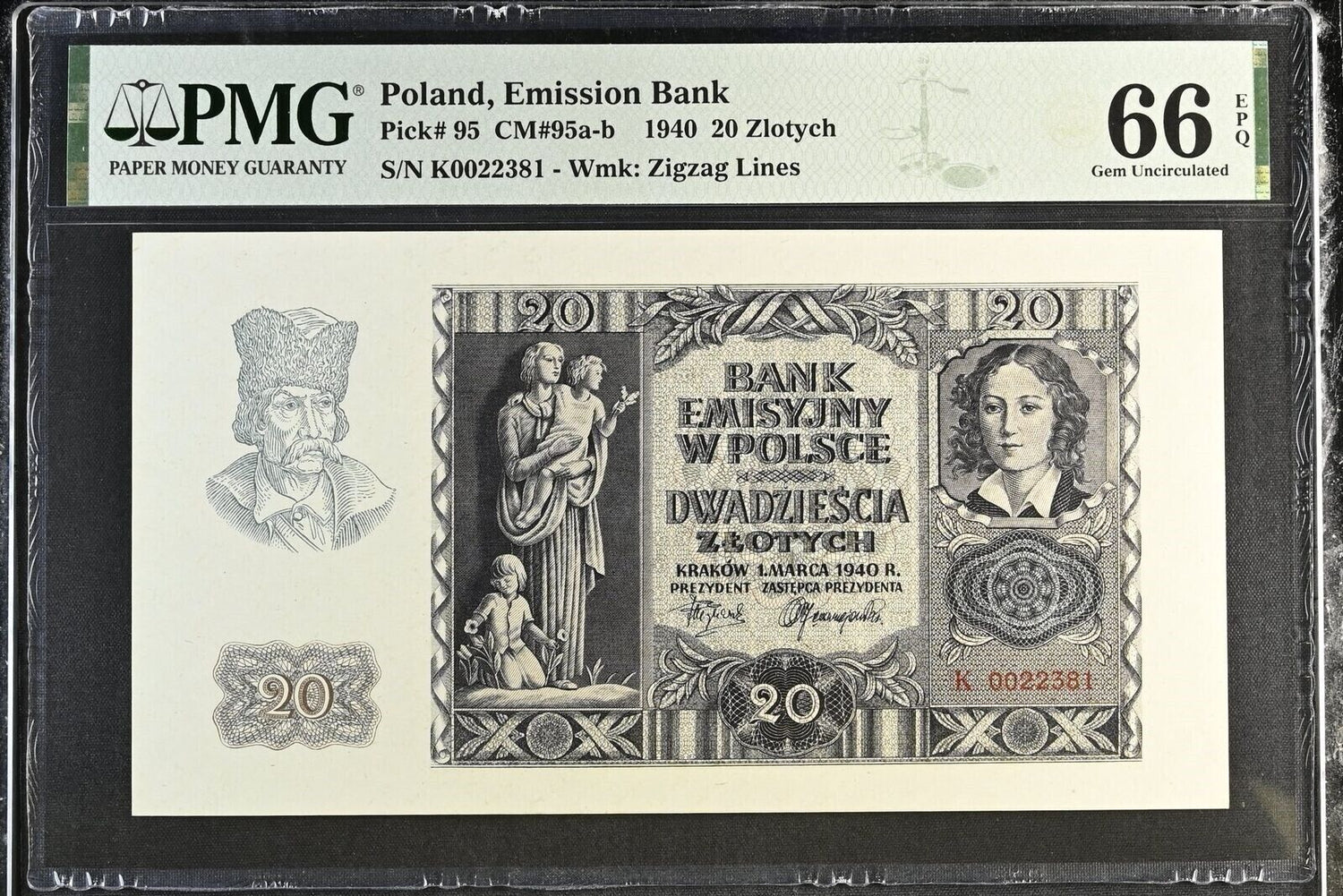 Poland 20 Zlotych 1940 P 95 Gem UNC PMG 66 EPQ