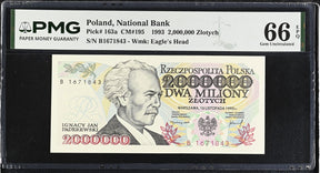 Poland 2000000 Zlotych 1993 P 163 a Gem UNC PMG 66 EPQ