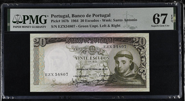 Portugal 20 Escudos 1964 P 167 b Superb Gem UNC PMG 67 EPQ