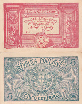 Portugal 5 Centavos Bronze 1918 P 98 AUnc