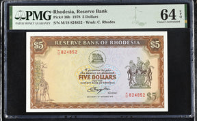 Rhodesia 5 Dollars 1978 P 36 b Choice UNC PMG 64 EPQ