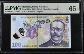 Romania 100 Lei 2022 P 121 m Polymer Gem UNC PMG 65 EPQ