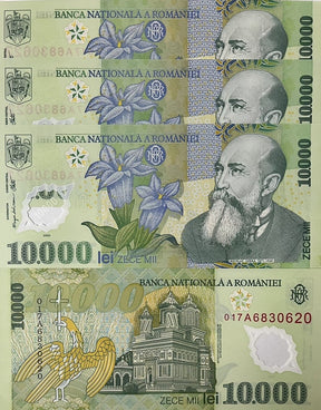 Romania 10000 Lei 2001 P 112 Polymer UNC LOT 3 PCS