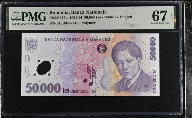 Romania 50000 Lei 2004 P 113 a Polymer Superb Gem UNC PMG 67 EPQ