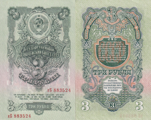 Russia 3 Rubles 1947 Type I P 218 UNC