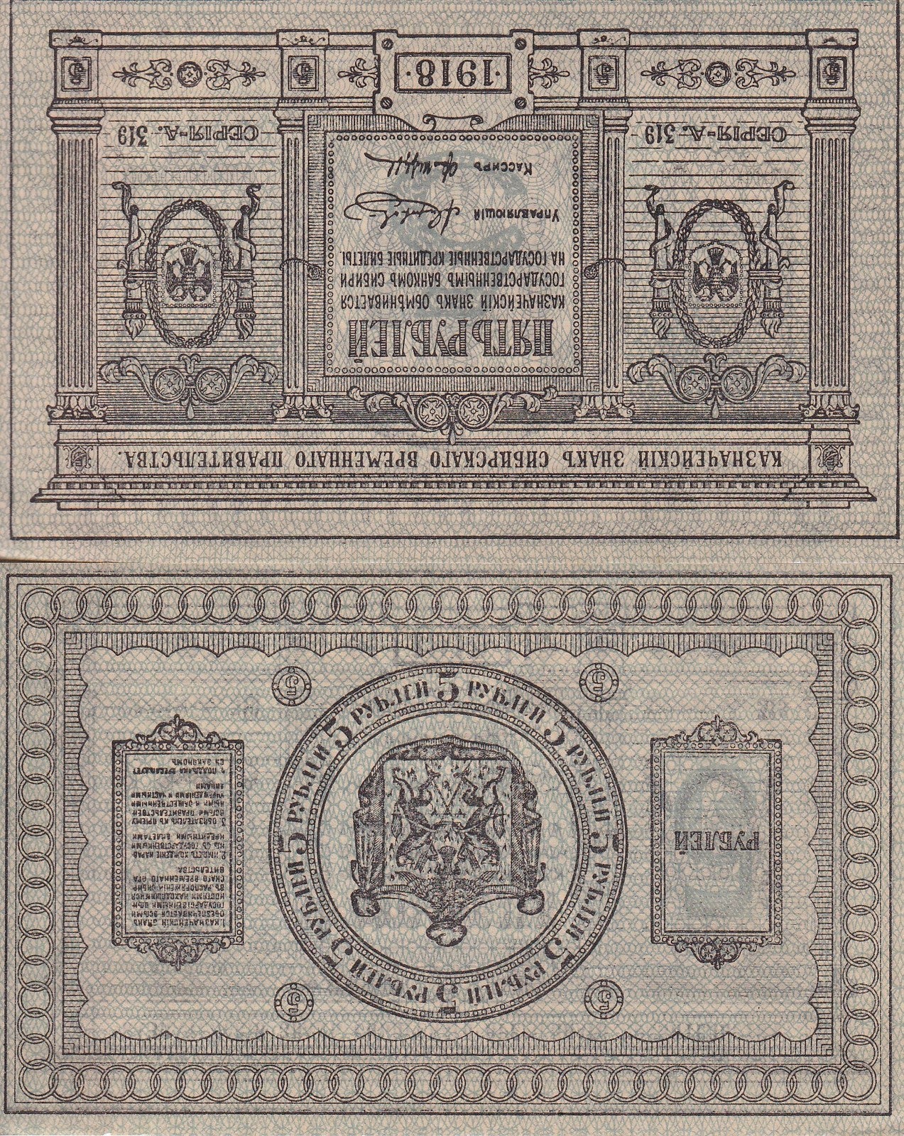 Russia 5 Rubles Siberia 1918 P S817 AUnc