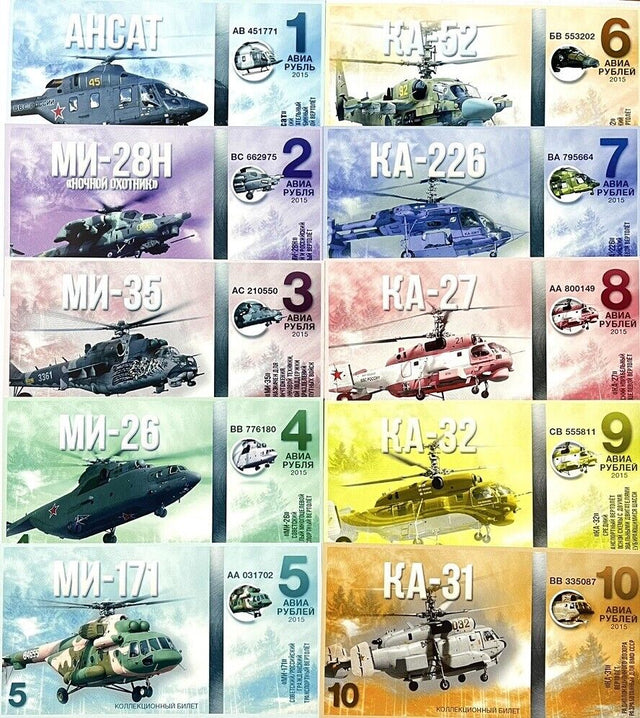 Russia Set 10 (2015) Comm. Helicopter Aircraft ka-27 31 32 226 AHCAT Fantasy