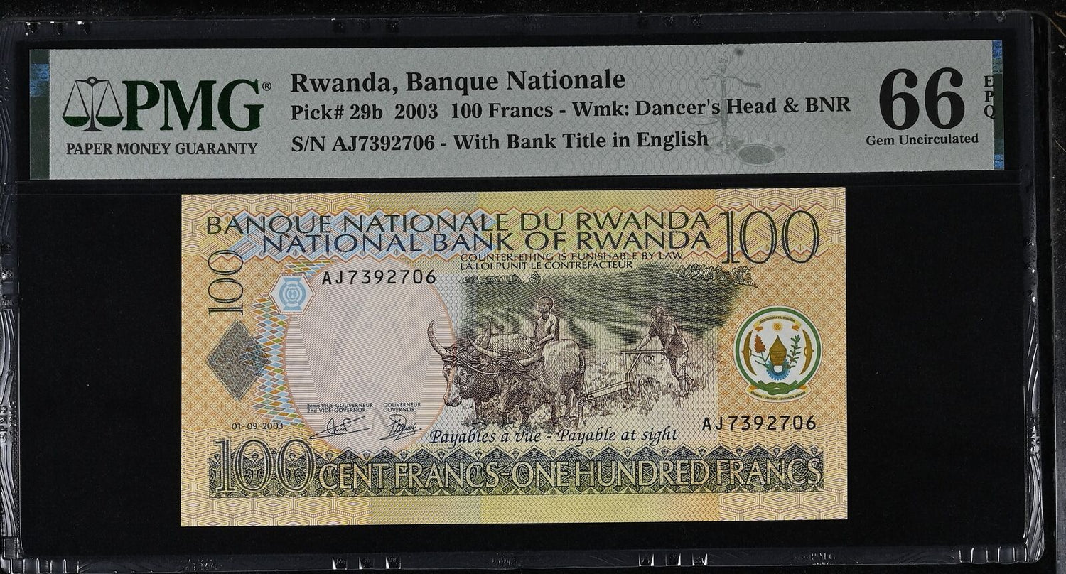 Rwanda 100 Francs 2003 P 29 b Gem UNC PMG 66 EPQ