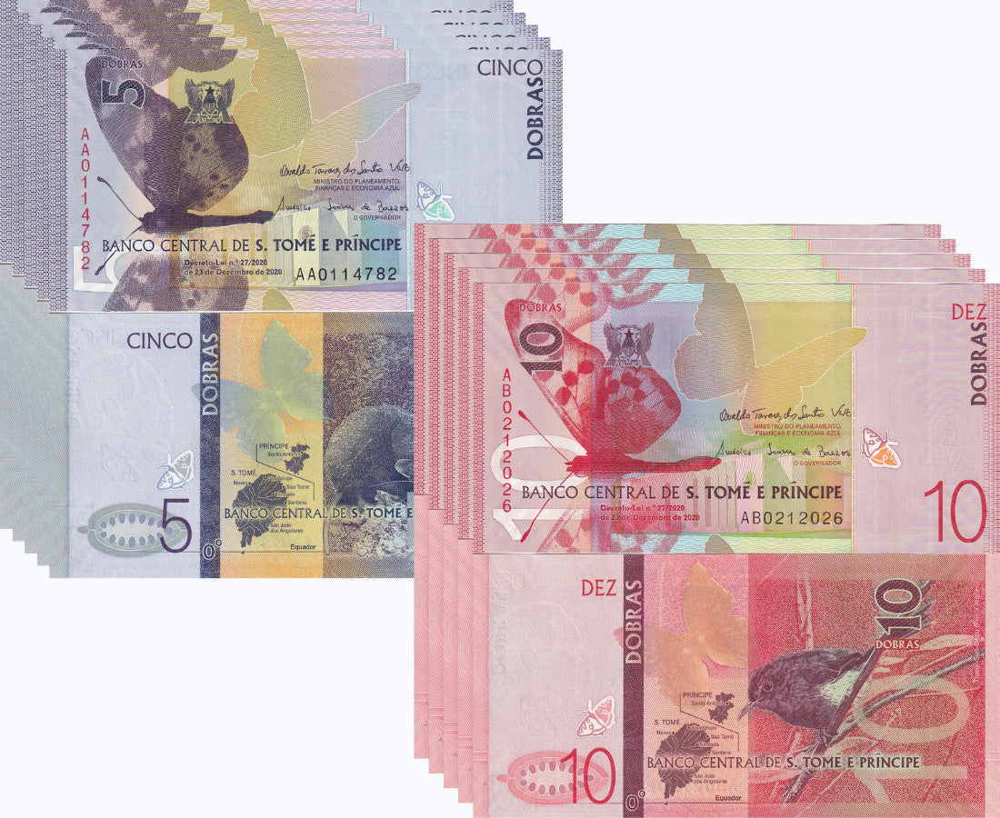 Saint Thomas & Prince Set 2 UNC 5 10 Dobras 2020/2021 P 76 77 Lot 5 Sets 10 Pcs