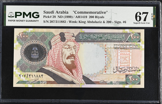 Saudi Arabia 200 Riyals ND 1999 P 28 Commemorative Superb Gem UNC PMG 67 EPQ