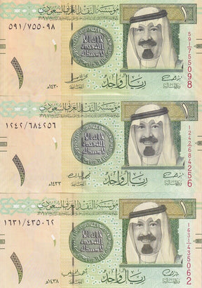 Saudi Arabia Set 3 PCS of 1 Riyal 2009 2012 2019 P 31b P 31c P 31d UNC