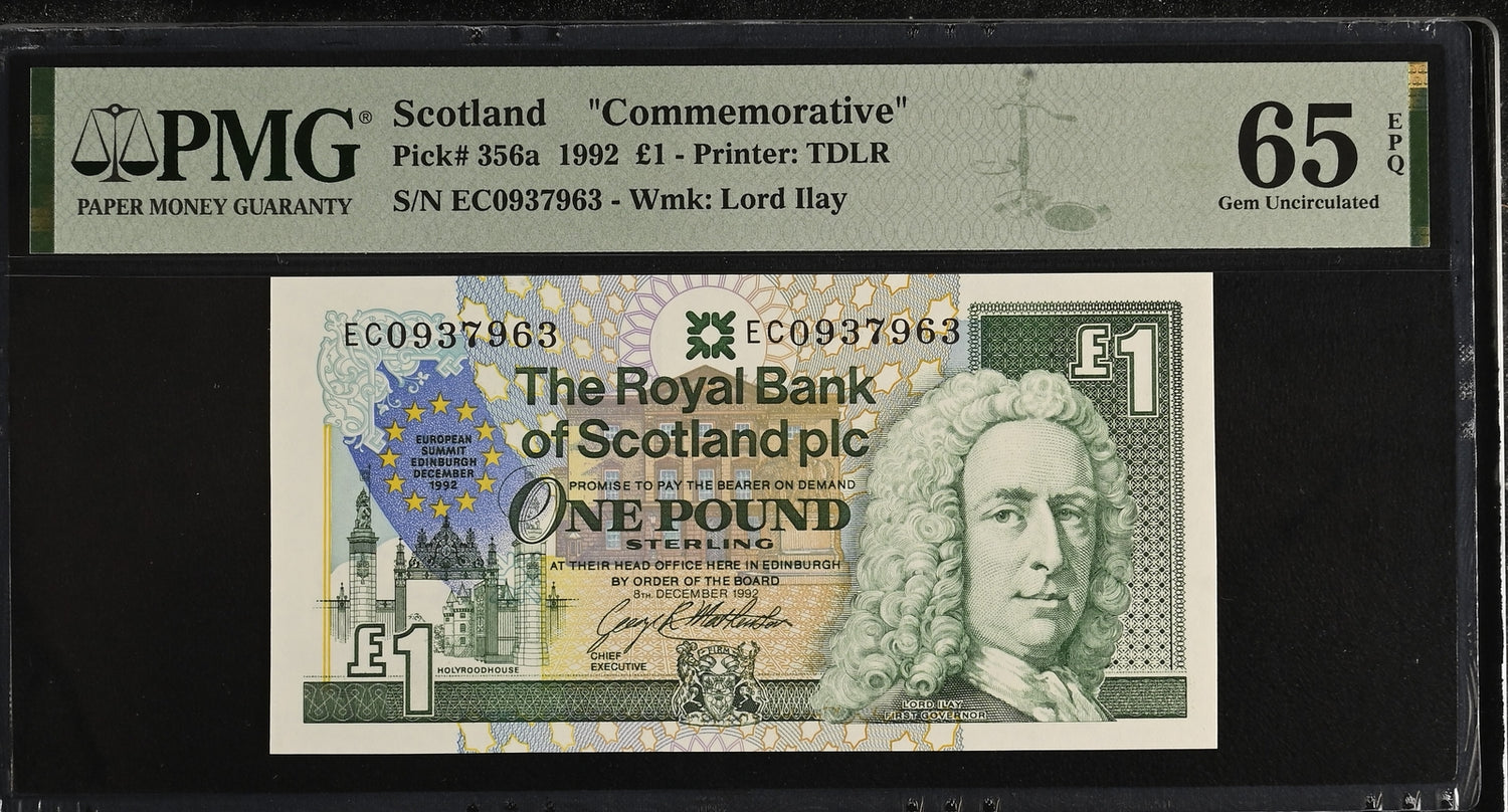 Scotland 1 Pound 1992 P 356 a Commemorative Gem UNC PMG 65 EPQ