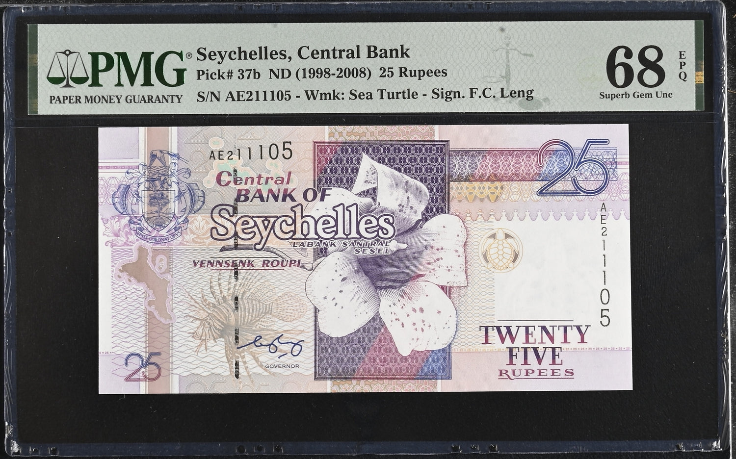 Seychelles 25 Rupees ND 1998-2008 P 37 b Superb Gem UNC PMG 68 EPQ TOP POP