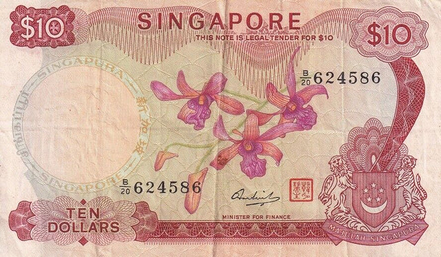 Singapore 10 Dollars ND 1967-1973 P 3 d Fine USED / Circulated See scan