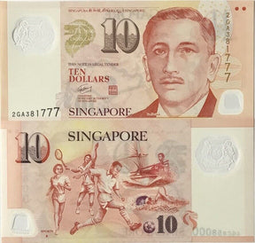 Singapore 10 Dollars ND 2004-2022 back below word "SPORTS" Polymer P 48 f UNC