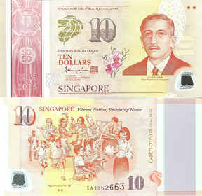 Singapore 10 Dollars ND 2015 P 57 b Polymer Comm. Opportunities UNC