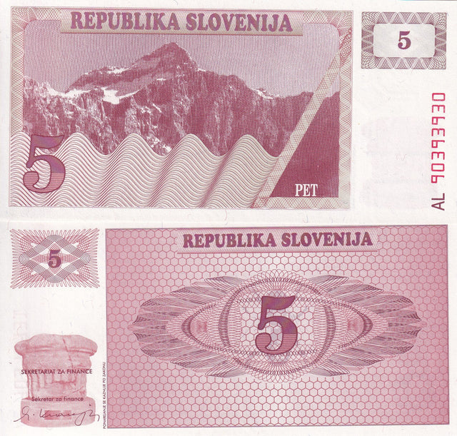 Slovenia 5 Tolarjev 1990 P 3 UNC