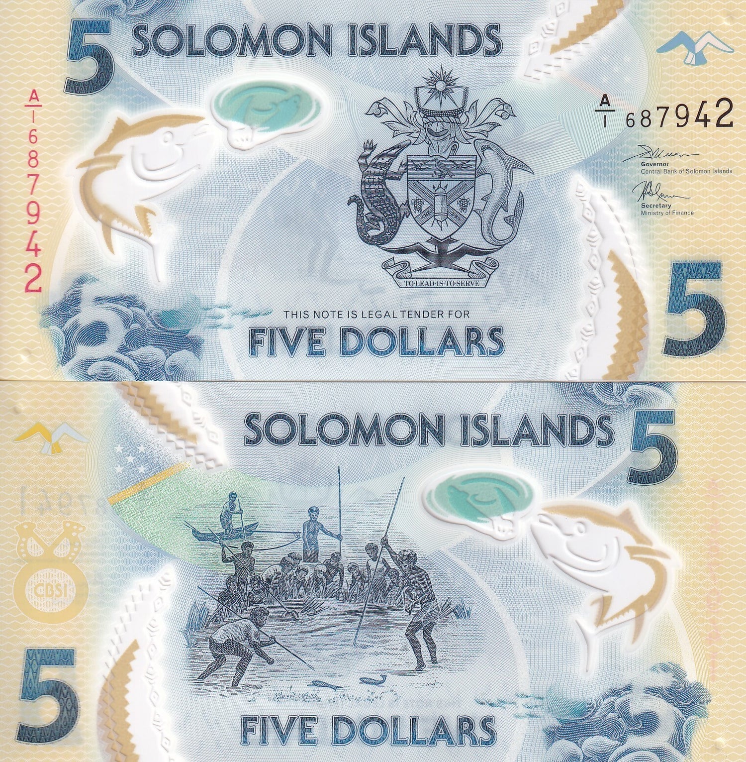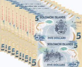 Solomon Islands 5 Dollars ND 2019 P 38 A/1 First Prefix Polymer LOT 10 UNC