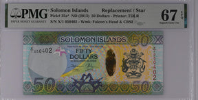 Solomon Islands 50 Dollars ND 2013 P 35 a* Replacement Superb Gem UNC PMG 67 EPQ