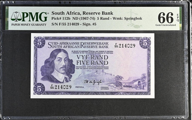 South Africa 5 Rand ND 1967-1974 P 112 b Gem UNC PMG 66 EPQ