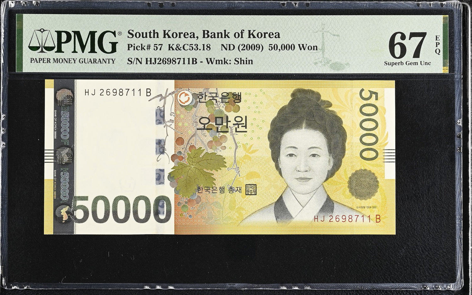 South Korea 50000 Won ND 2009 P 57 Superb Gem UNC PMG 67 EPQ