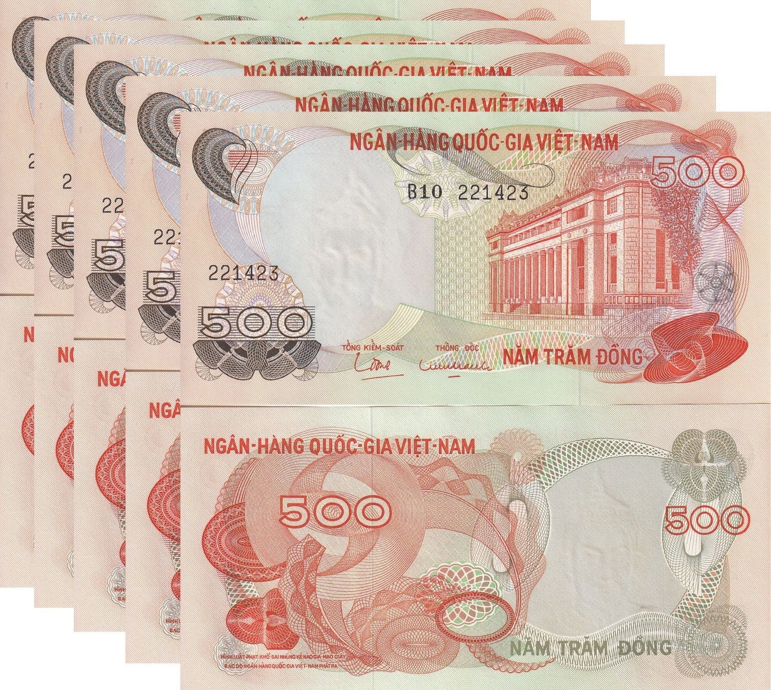 South Vietnam 500 Dong ND 1970 P 28 AUnc LOT 5 PCS