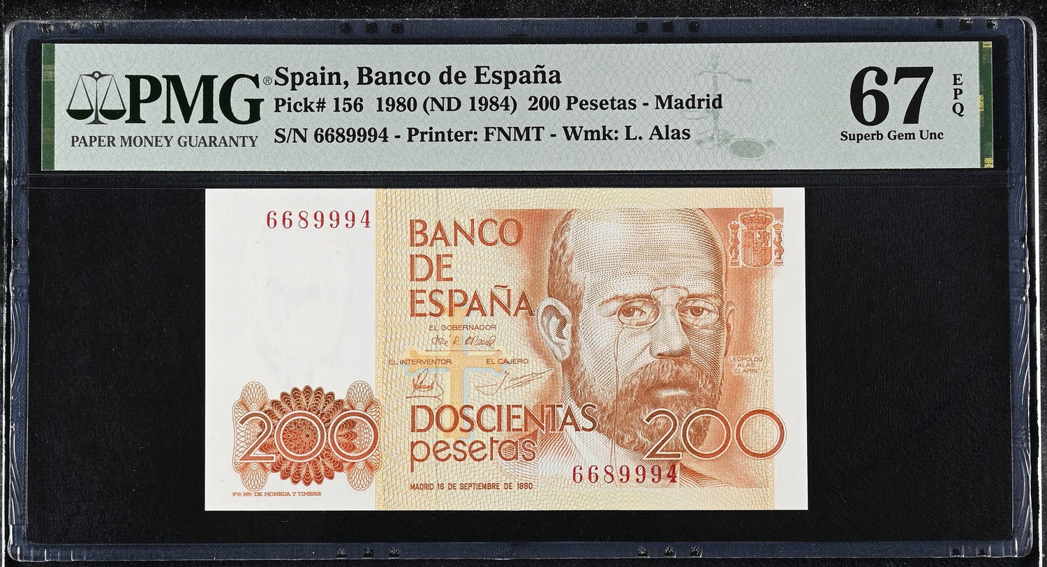 Spain 200 Pesetas 1980 ND 1984 P 156 Superb Gem UNC PMG 67 EPQ