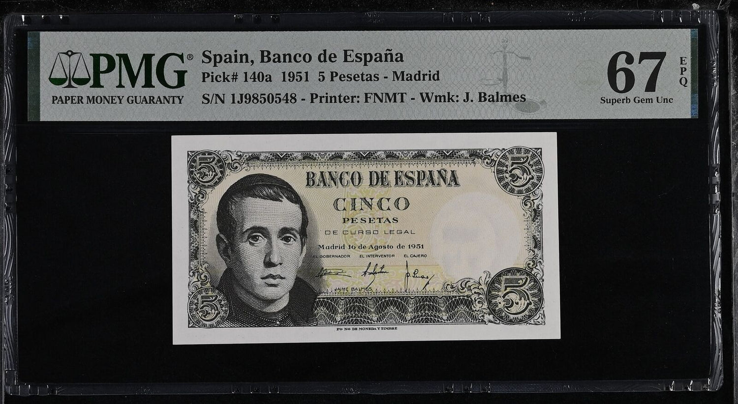 Spain 5 Pesetas 1951 P 140 a Superb Gem UNC PMG 67 EPQ