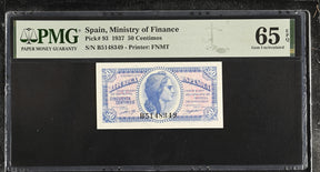 Spain 50 centimos 1937 P 93 Gem UNC PMG 65 EPQ