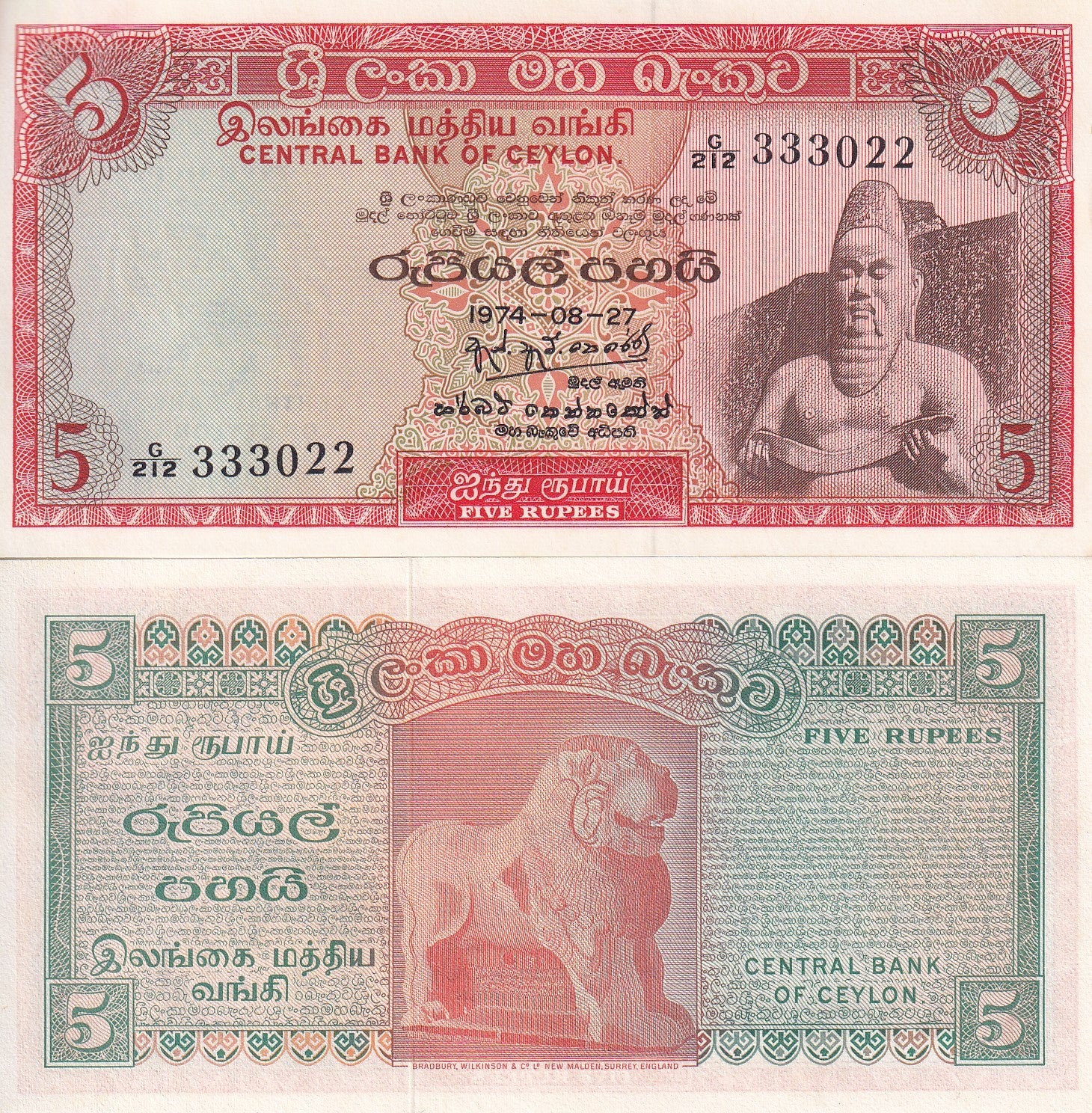 Sri Lanka 5 Rupees 1974 P 73A Ceylon UNC