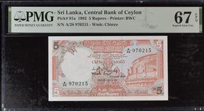 Sri Lanka 5 Rupees 1982 P 91 a Superb Gem UNC PMG 67 EPQ