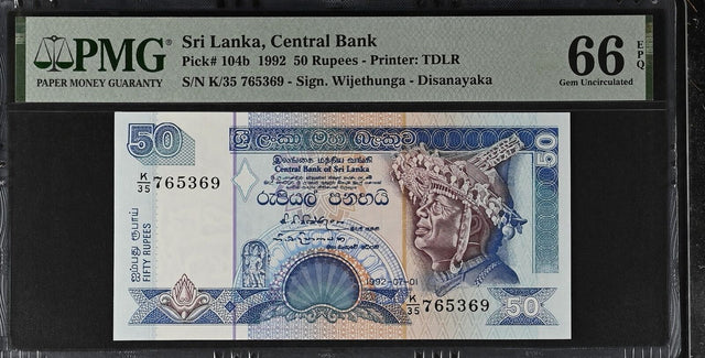 Sri Lanka 50 Rupees 1992 P 104 b Gem UNC PMG 66 EPQ