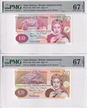 St. Helena Set 2 ; 10 20 Pounds 2012 P 12 P 13 Superb Gem UNC PMG 67 EPQ