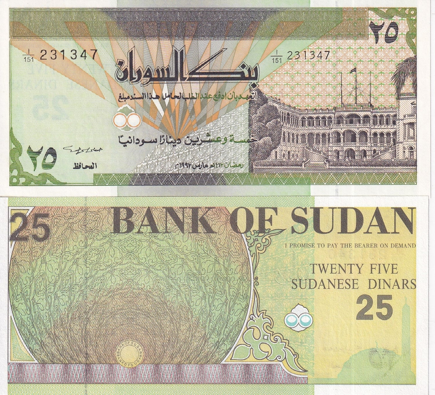 Sudan 25 Sudanese Dinars 1992 P 53 b UNC