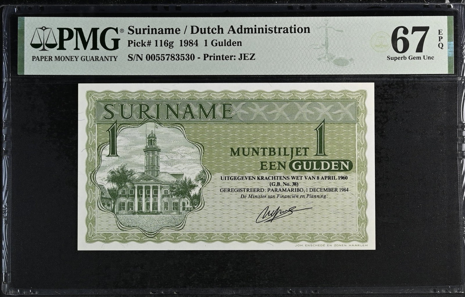 Suriname 1 Gulden 1984 P 116 g Superb Gem UNC PMG 67 EPQ Top Pop