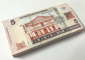 Suriname 5 Dollars 2012 P 162 b UNC Lot 100 Pcs 1 Bundle