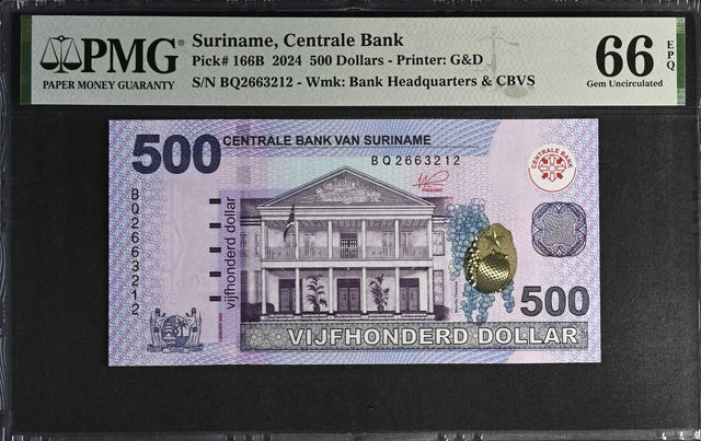 Suriname 500 Dollars 2024 P 166B Gem UNC PMG 66 EPQ
