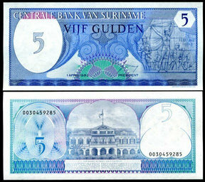 SURINAME SURINAM 5 GULDEN 1982 P 125 UNC is backordered and will ship as soon as it is back in stock.