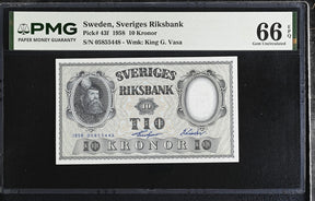 Sweden 10 Kronor 1958 P 43 f Gem UNC PMG 66 EPQ
