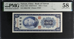 Taiwan 1 Yuan 1954 P 1964 About UNC PMG 58