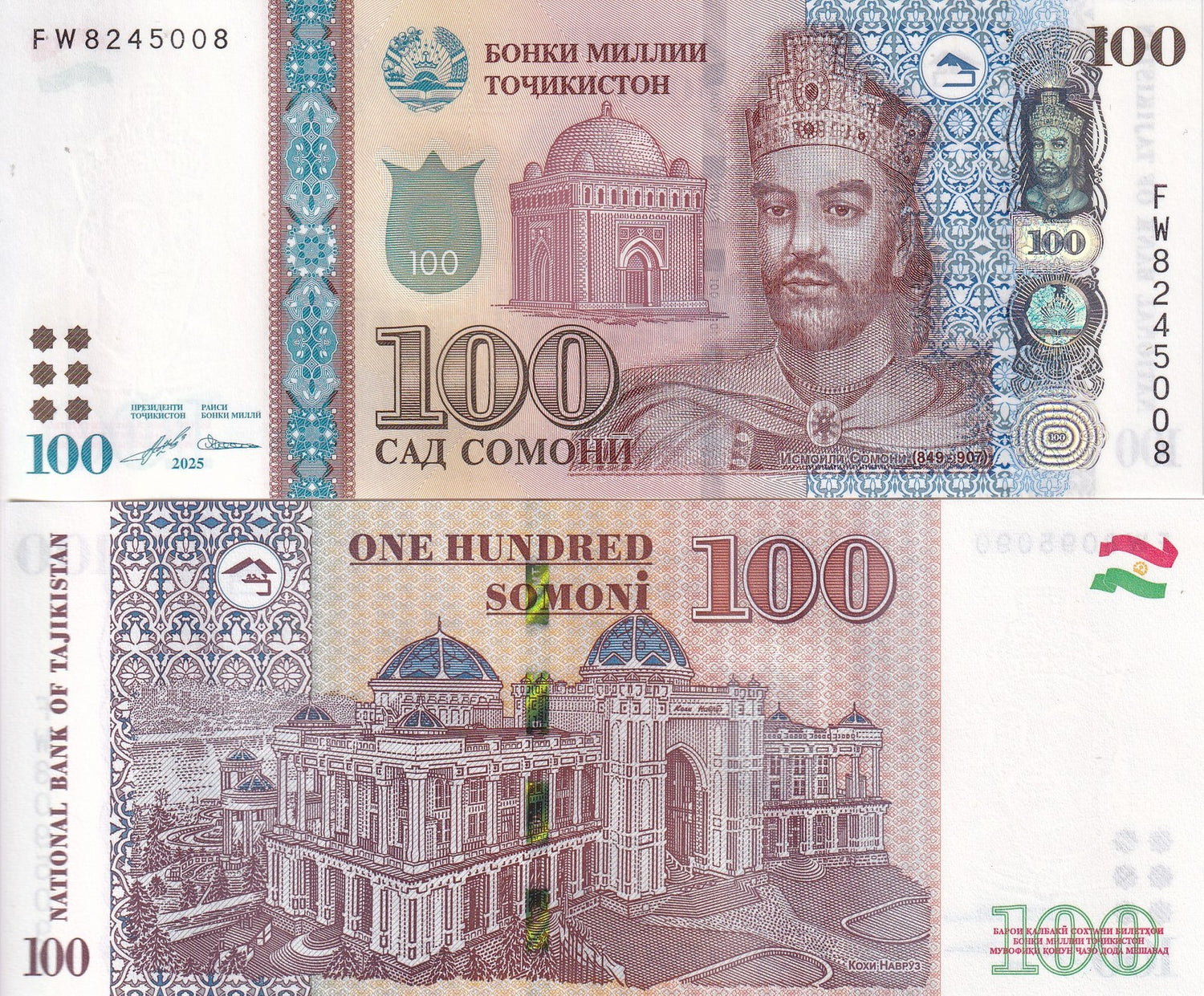 Tajikistan 100 Somoni 2025 P 28 UNC