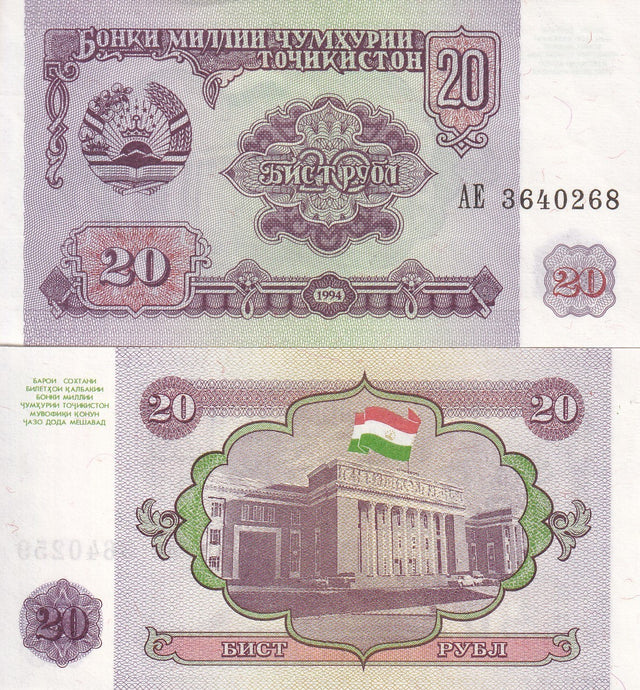 Tajikistan 20 Rubles 1994 P 4 UNC
