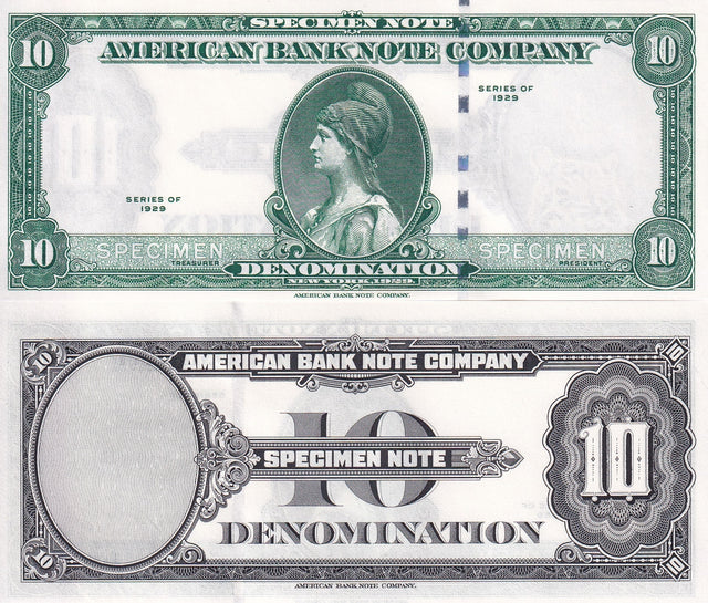 TEST NOTE American Bank Notes Company(USA) 10 Units 1929 (ND1960-1970) Specimen is backordered and will ship as soon as it is back in stock.