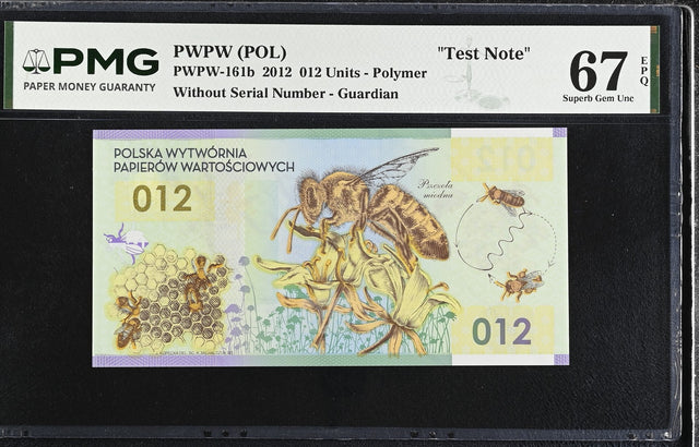 Test Note Poland PWPW 012 Units ND 2012 Polymer Superb Gem UNC PMG 67 EPQ