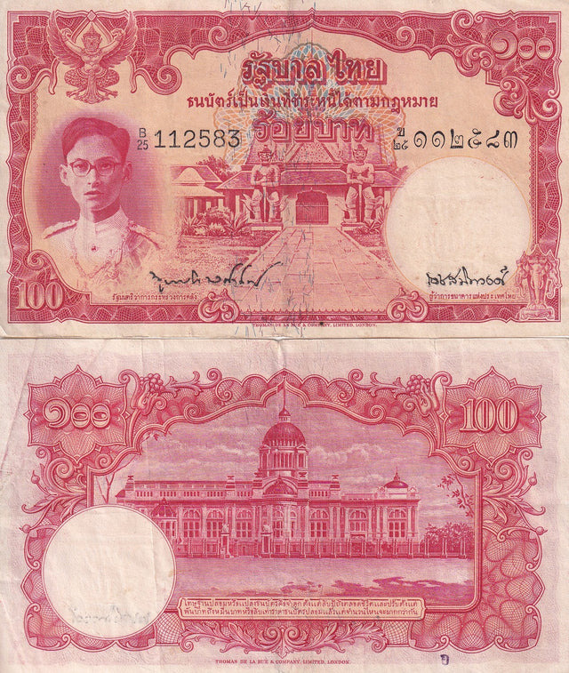 THAILAND 100 BAHT ND 1948 P 73 b sign 32 Young Face Original Paper VF