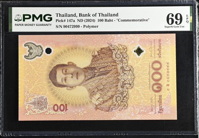 Thailand 100 Baht ND 2024 Commemorative P 143 Por-Pan Superb Gem UNC PMG 69 EPQ