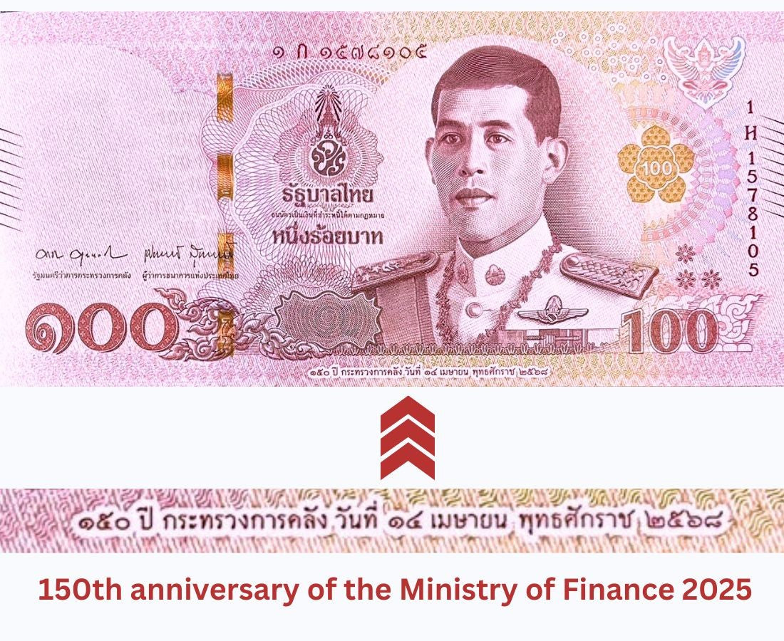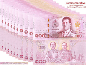 Thailand 100 Baht ND 2025 Commemorative 150th MOF OverPrint P 144 LoT 10 UNC
