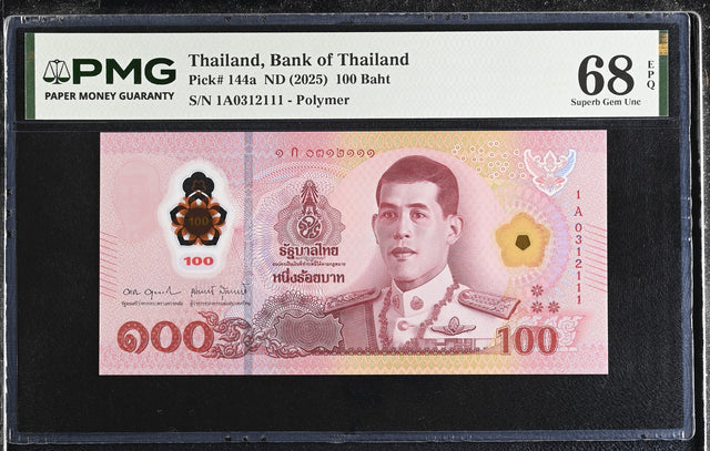 Thailand 100 Baht ND 2025 P 144 a Polymer Superb Gem UNC PMG 68 EPQ TOP POP