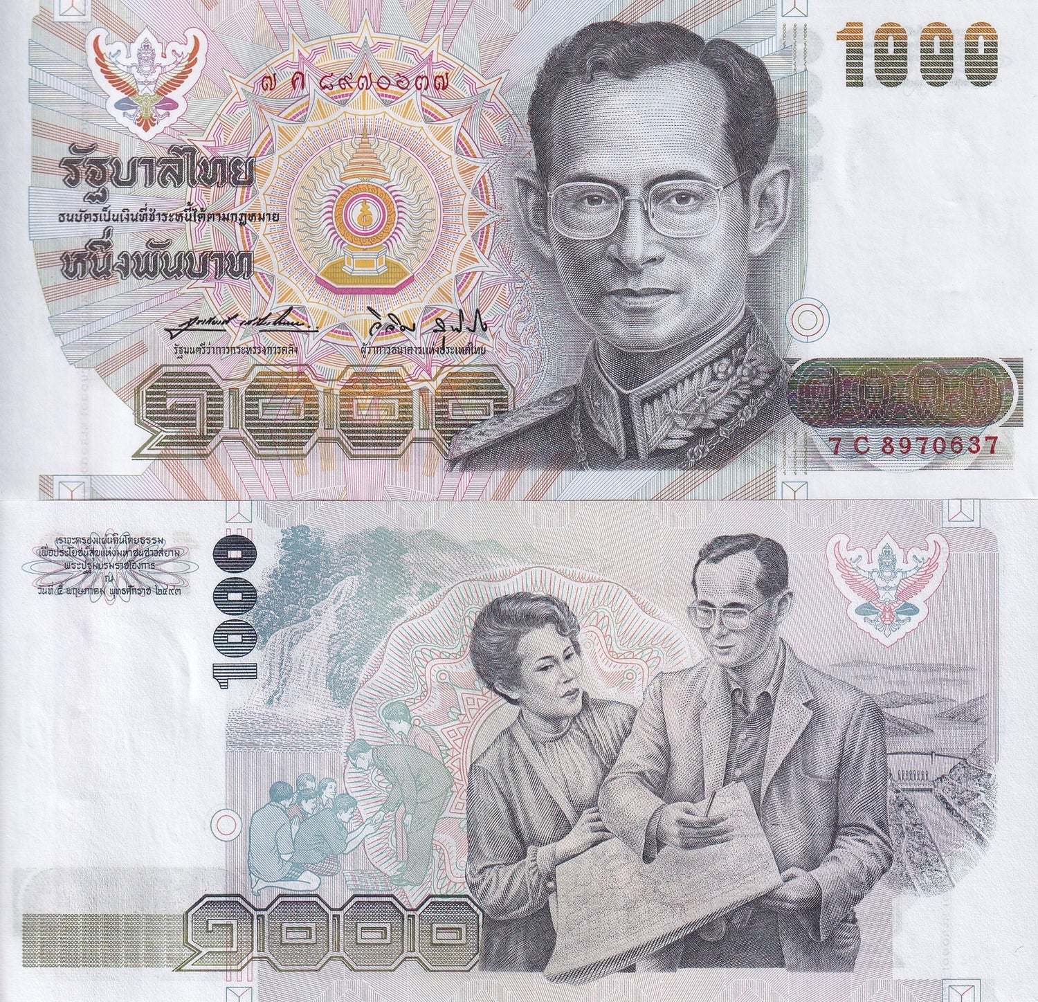 Thailand 1000 Baht ND 1992 P 92 Sign 64 UNC