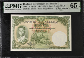 Thailand 20 Baht ND 1953 P 77 d Sign 41 Gem UNC PMG 65 EPQ
